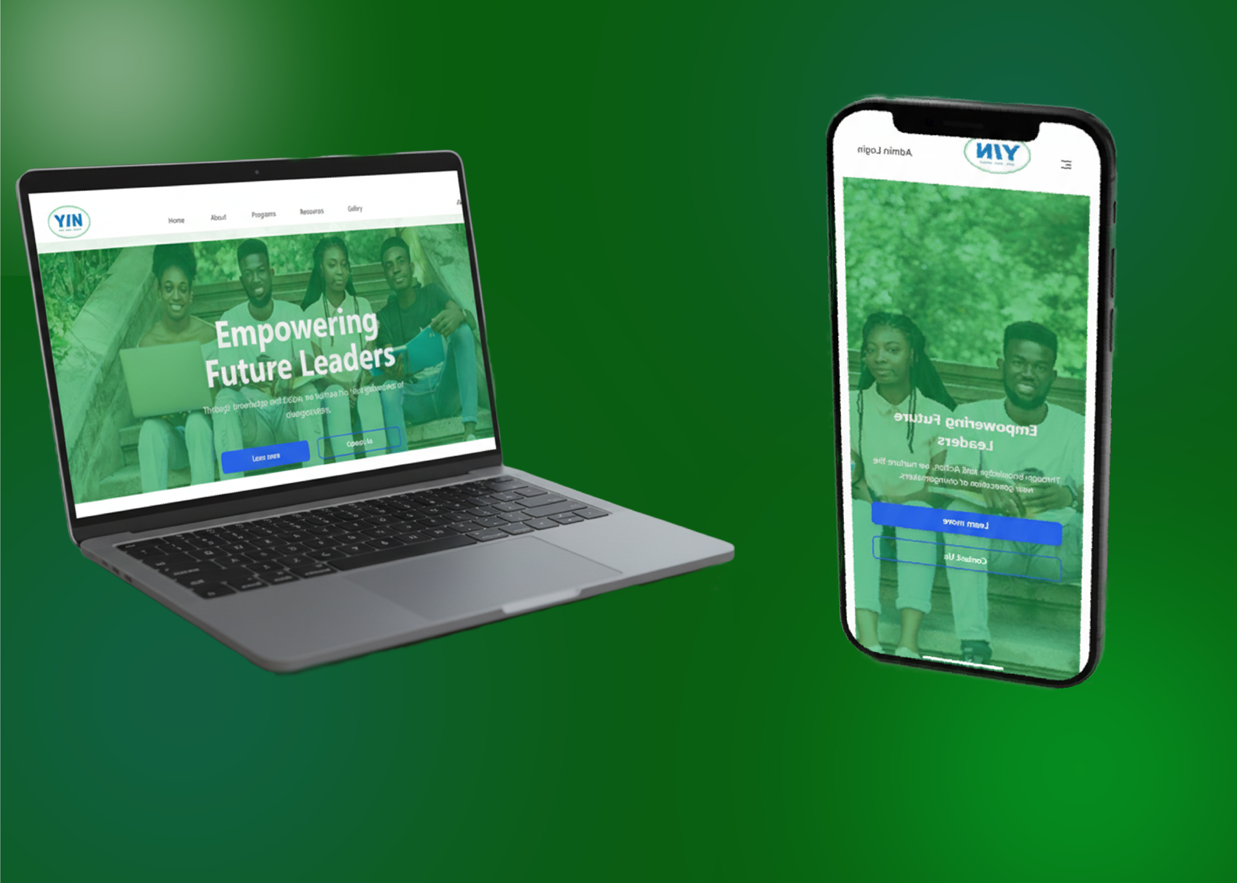 A laptop and a smartphone displaying a sleek, home page for an initiative website interface